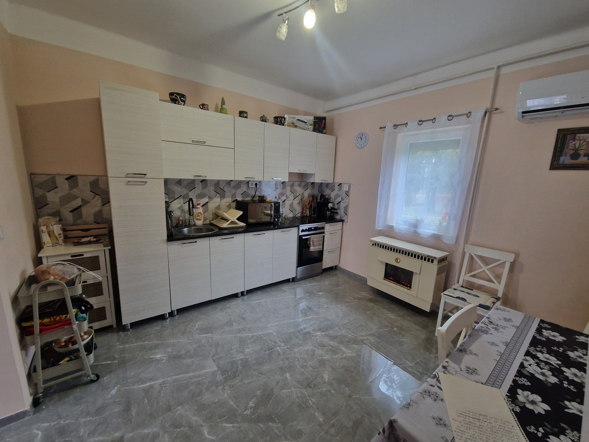 ✅ Az elektromos hálózatra H tarifa került bekötésre, amely lehetővé teszi a rendkívül kedvező költségű fűtést a két meglévő klímaberendezéssel. A fűtés így önállóan klímával, vagy a meglévő gázkonvektorokkal kombinálva is megoldható, rugalmas és gazdaságos módon.