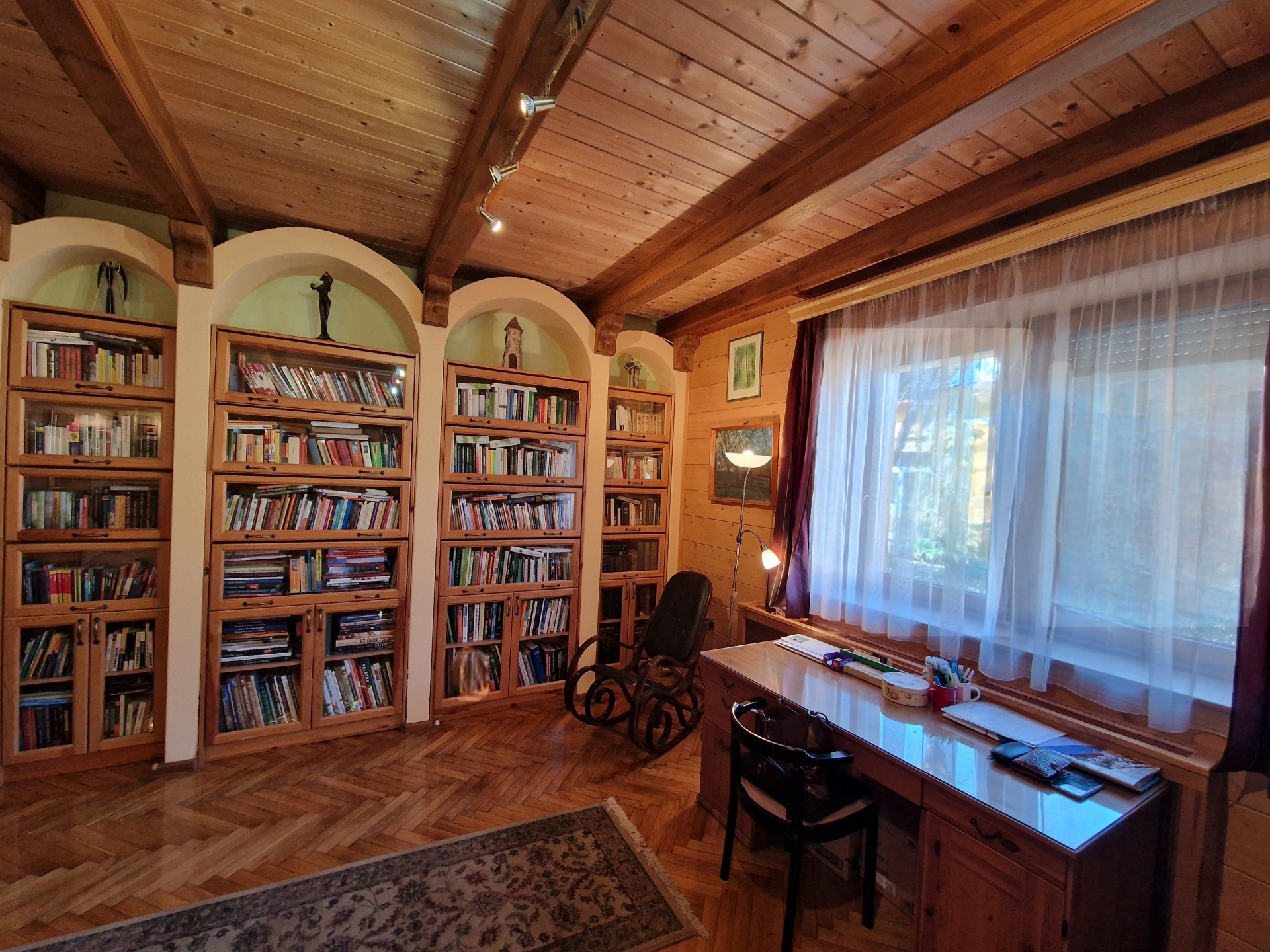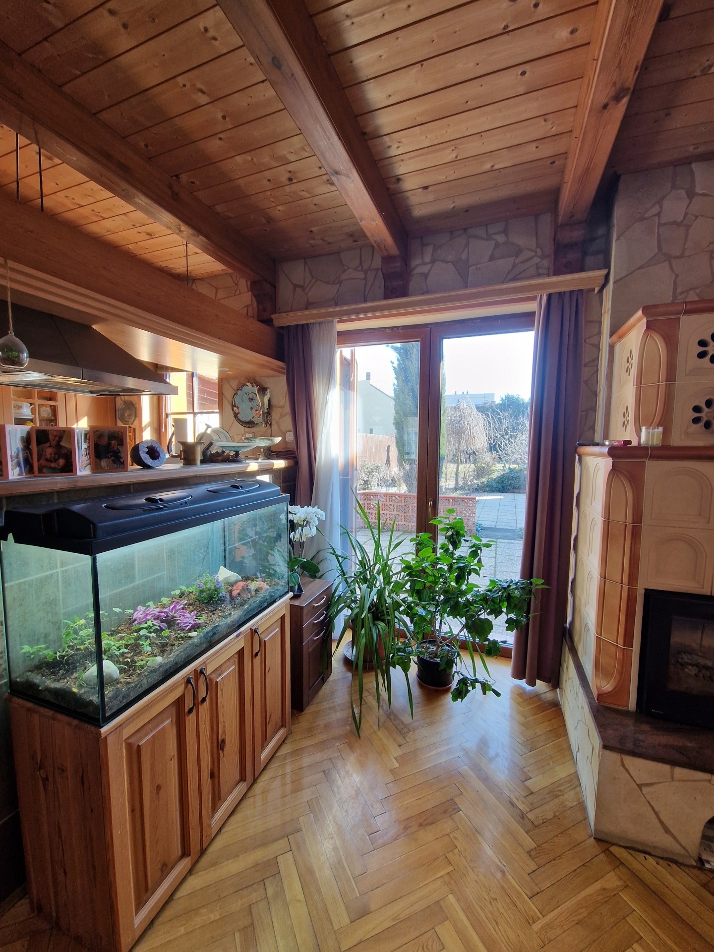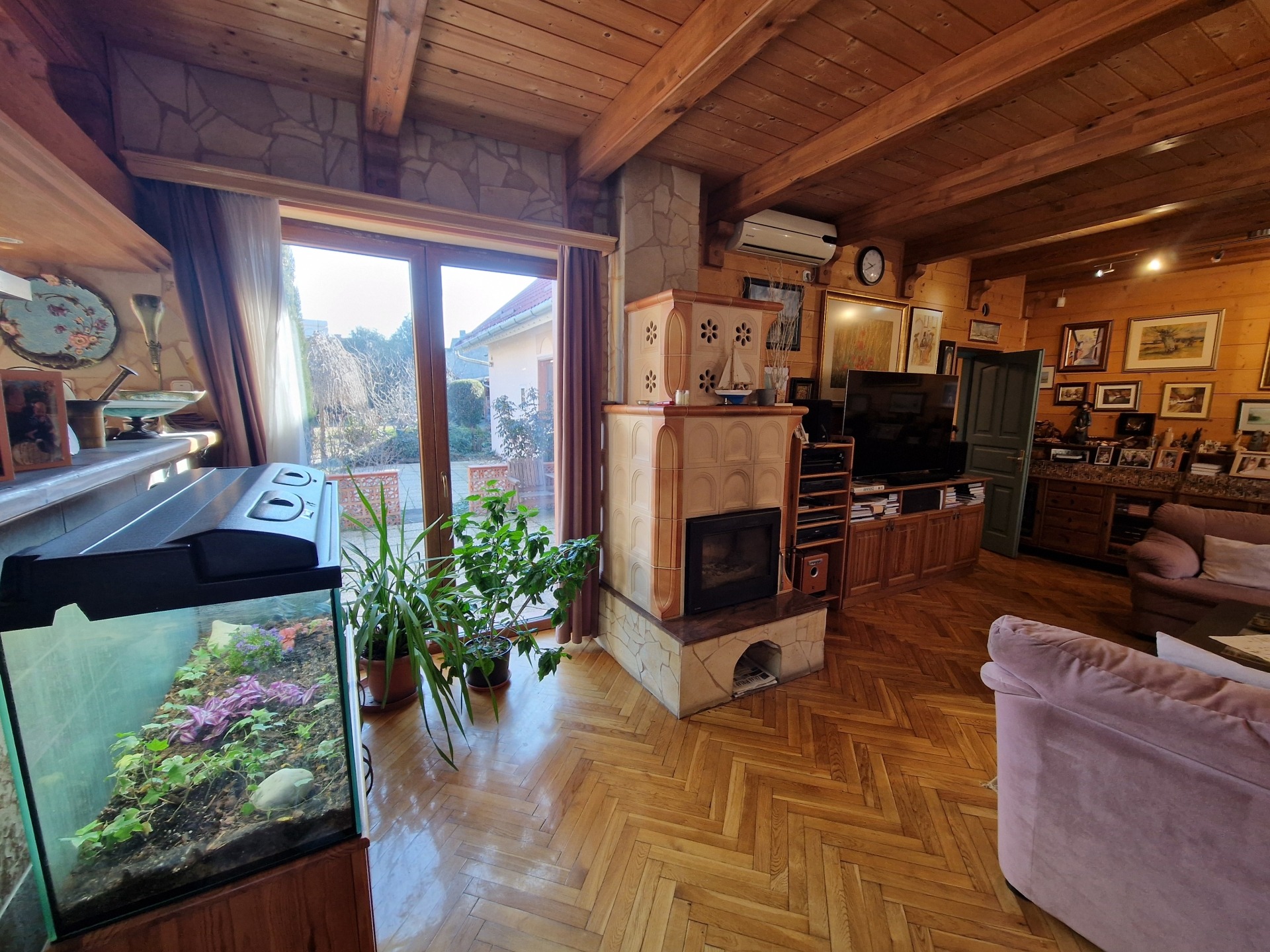 A belső tér kialakítása természetközeli, egyedi stílusú. A tömörfa burkolatok, gerendák és fa szerkezeti elemek időtálló minőséget és exkluzív hangulatot teremtenek.