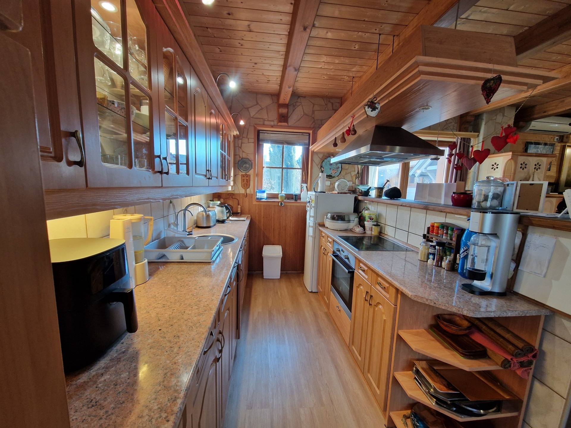 A vételár tartalmazza az összes beépített bútort és a komplett konyhát.